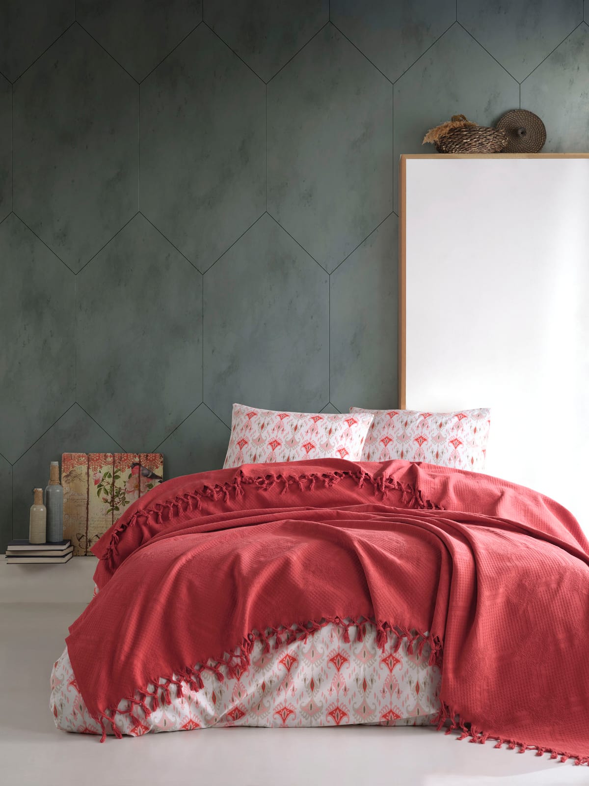 Jakarlı Saçaklı Yatak Örtüsü