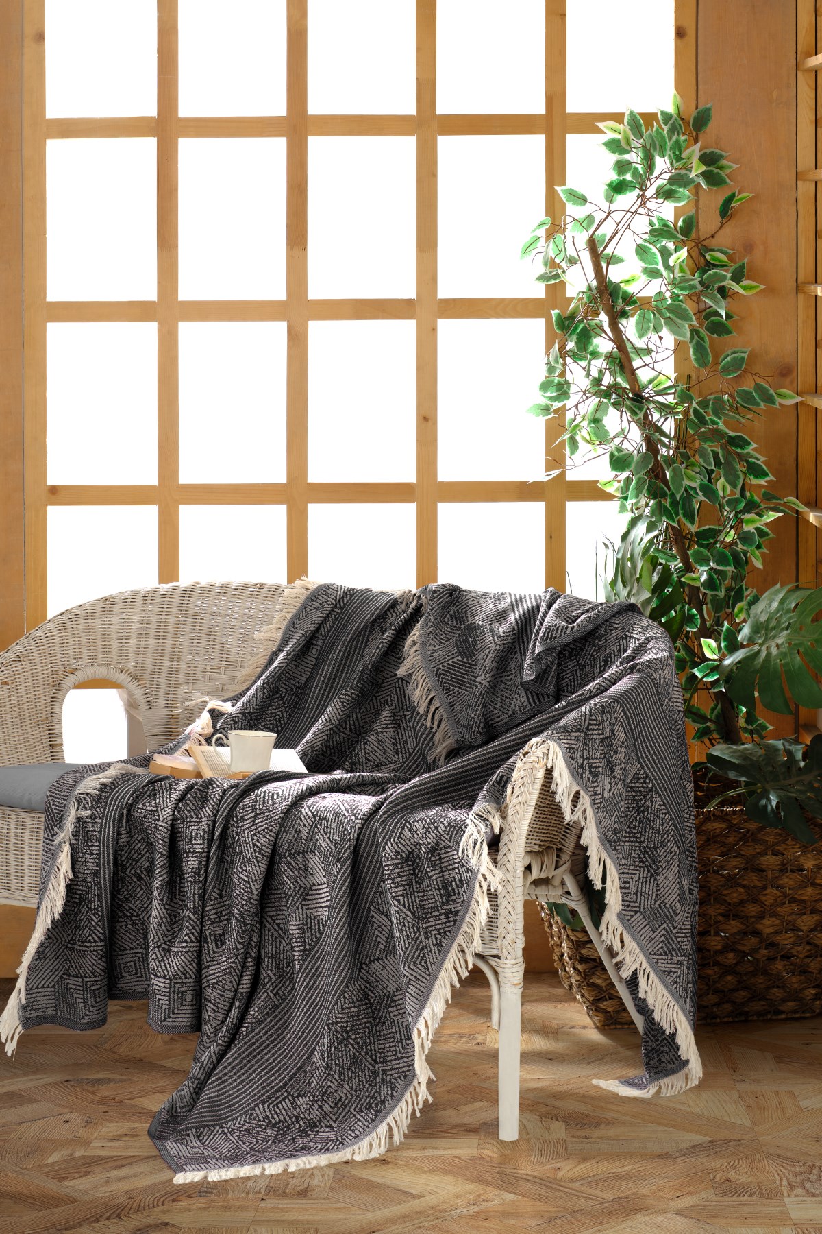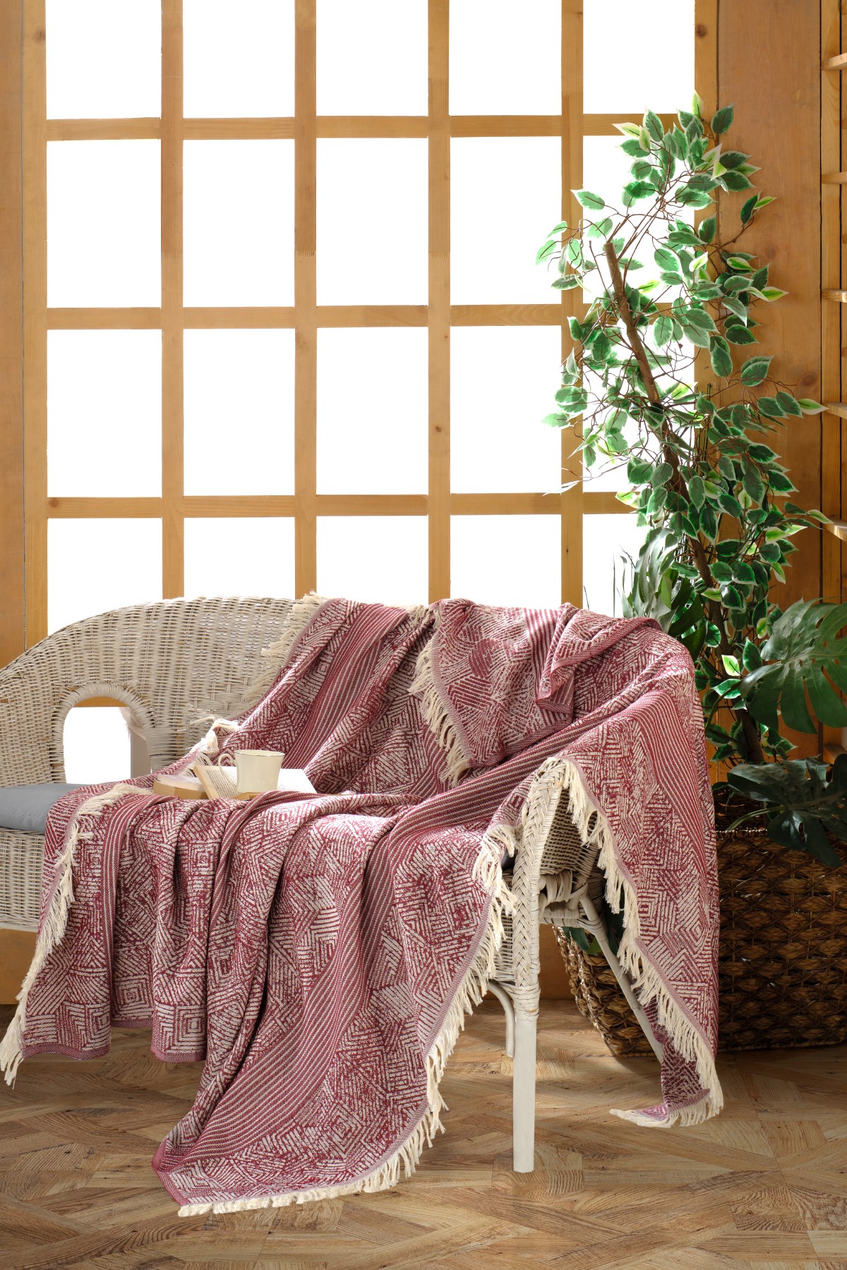 %100 Pamuk Jakarlı Dokuma Tekniği ile üretilmiştir. Örtü: 170x205 cm Kenarları püsküllüdür. Makinada yıkamaya uygundur. Çok amaçlı kullanım alanına sahiptir.