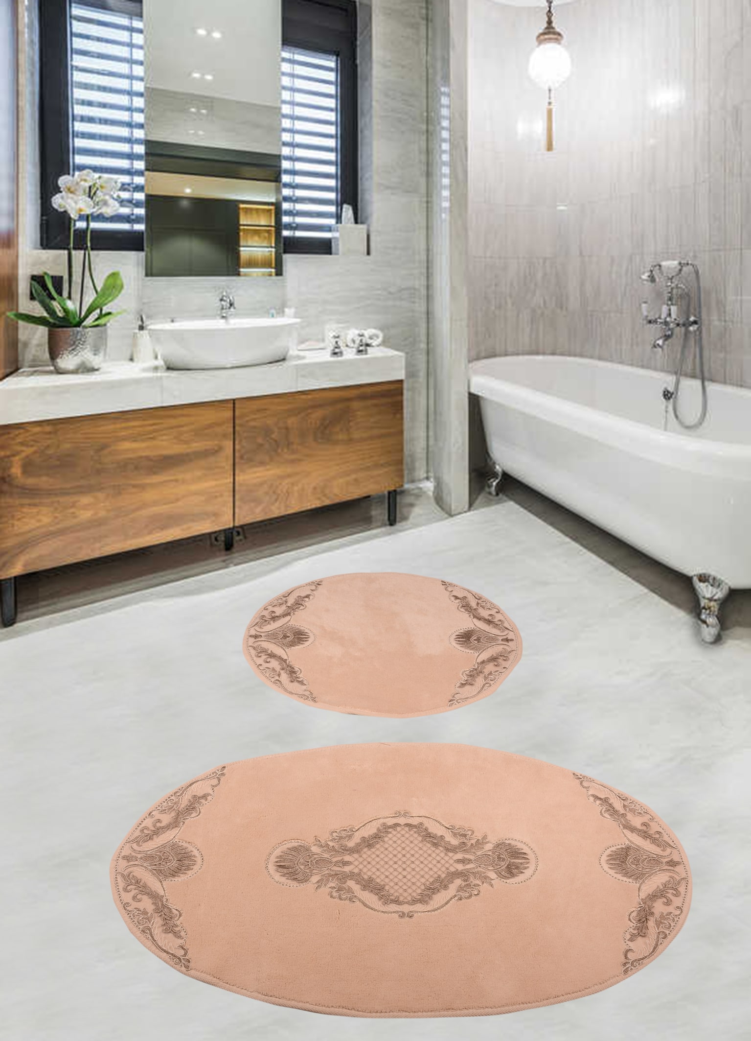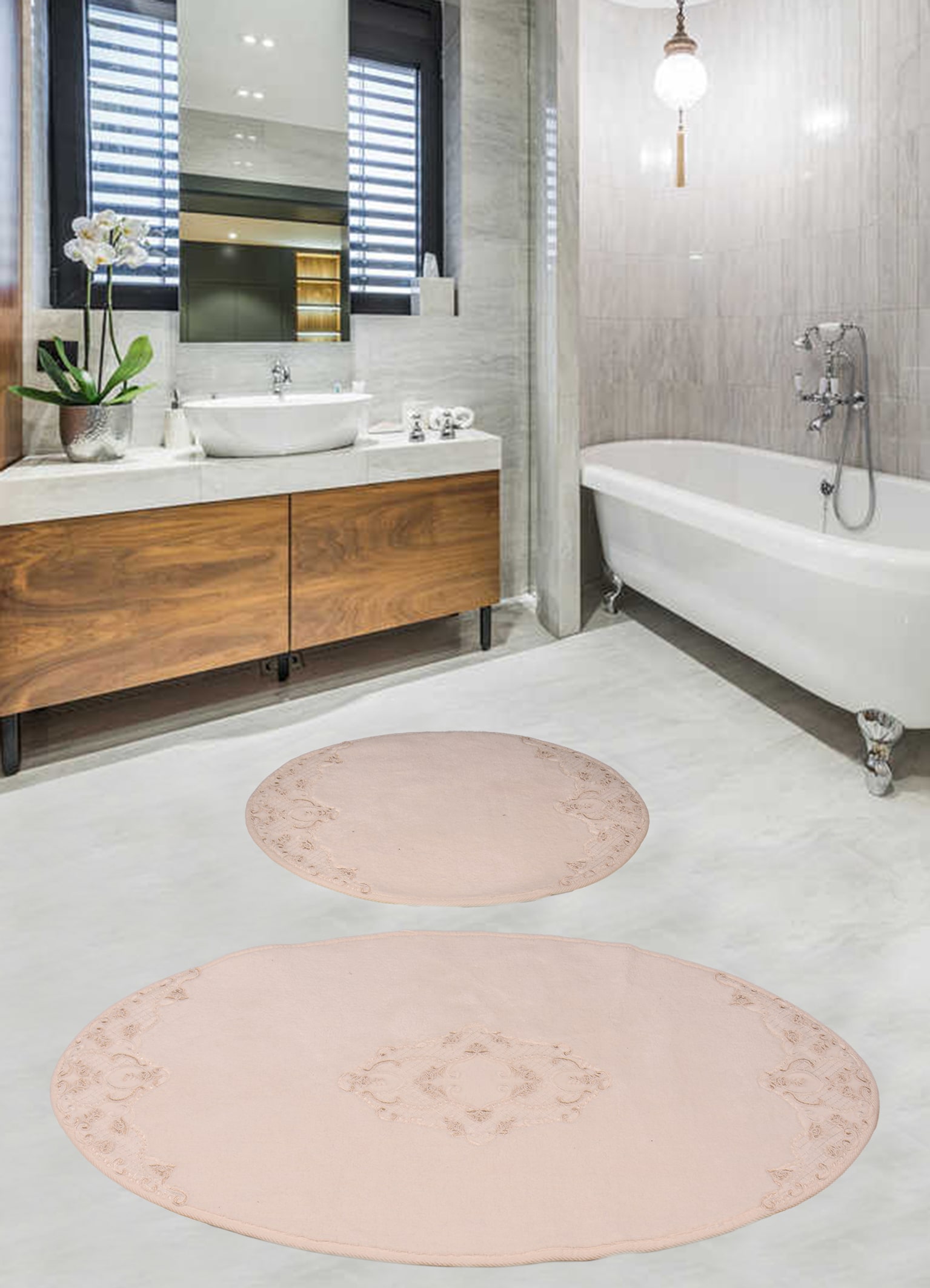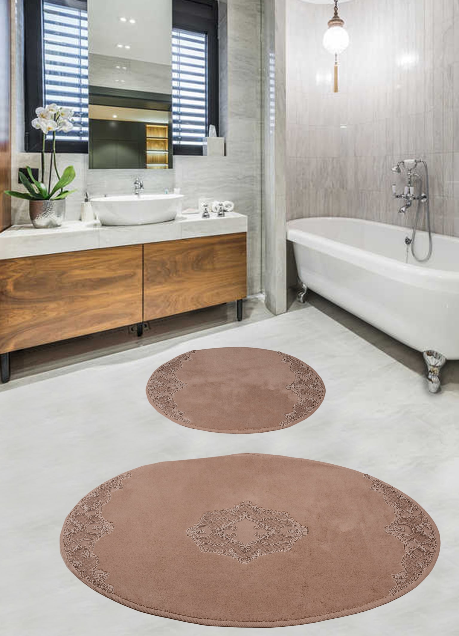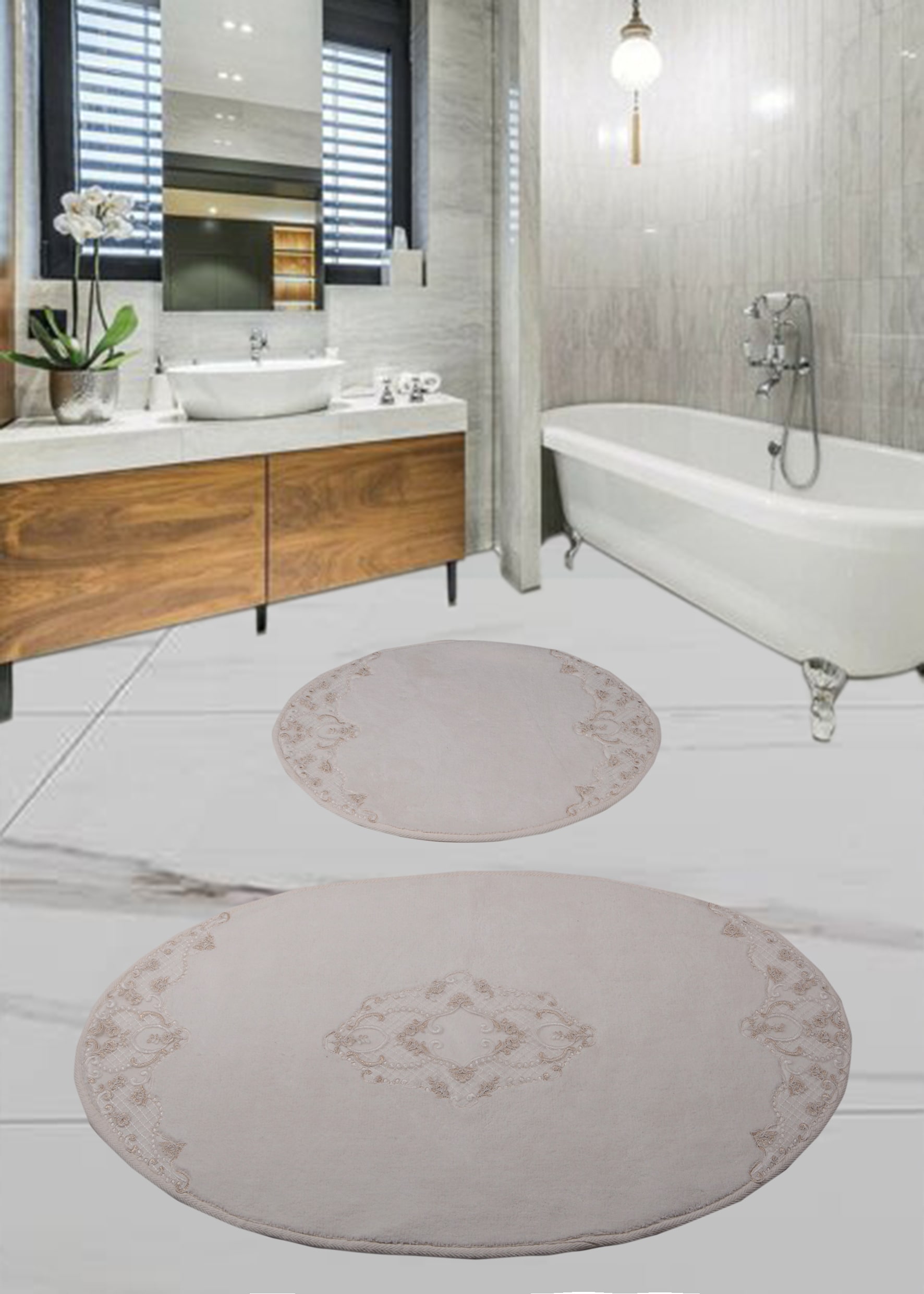 Dantelli Banyo paspası %100 doÄŸal natural pamuk 1500 gr/m2 kaymaz - Ebat: 60*100+50*60 cmÂ