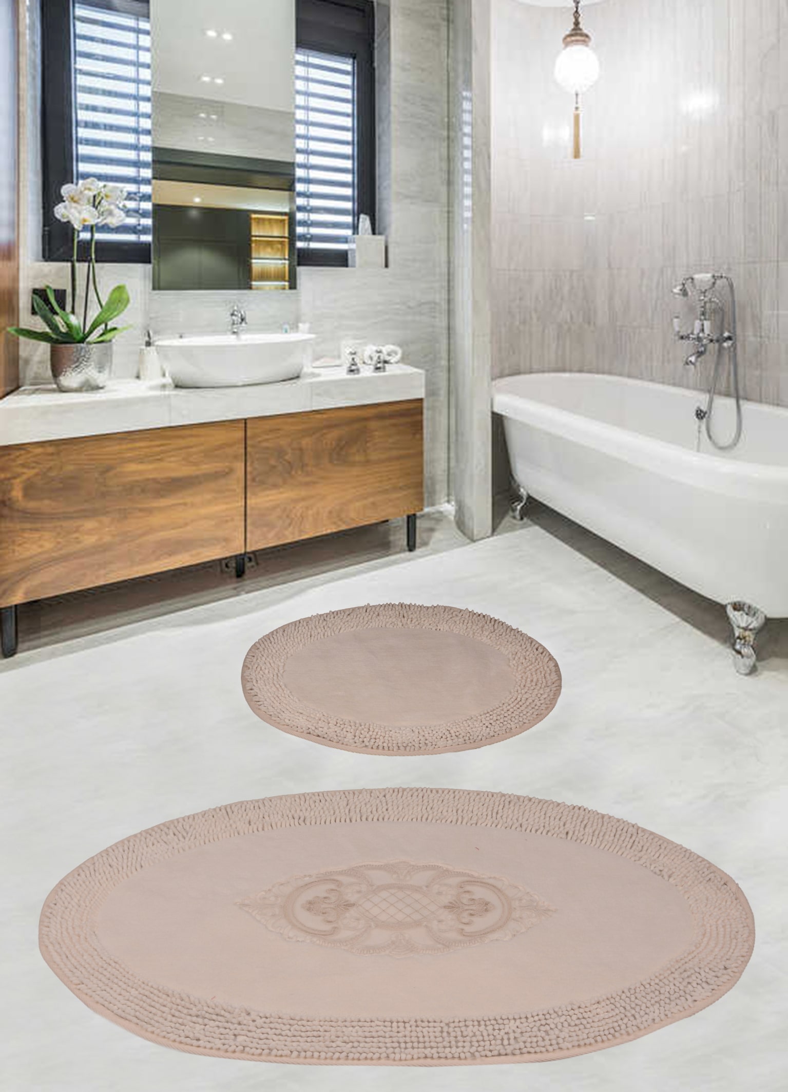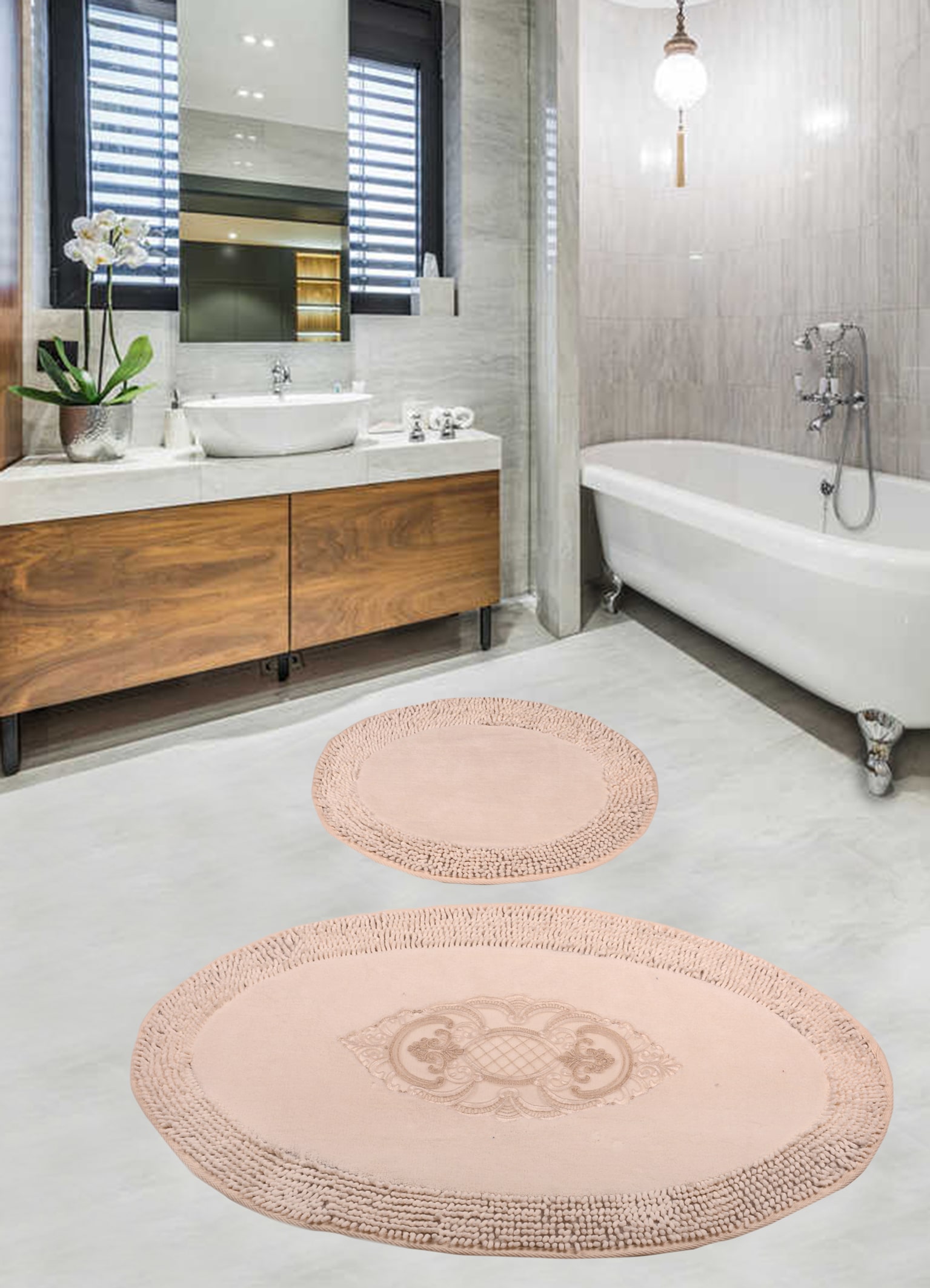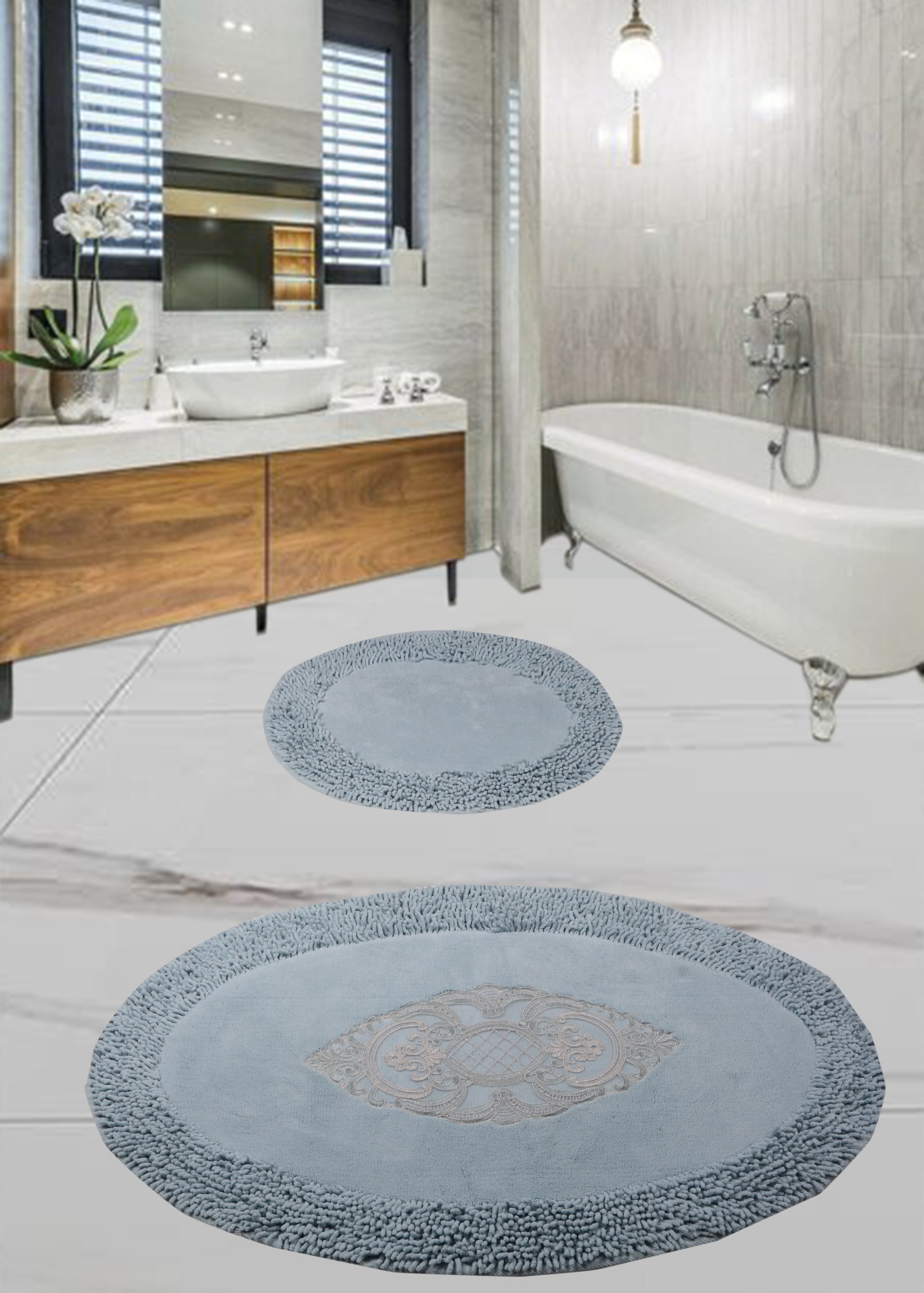 Dantelli Banyo paspası %100 doÄŸal natural pamuk 1500 gr/m2 kaymaz - Ebat: 60*100+50*60 cmÂ